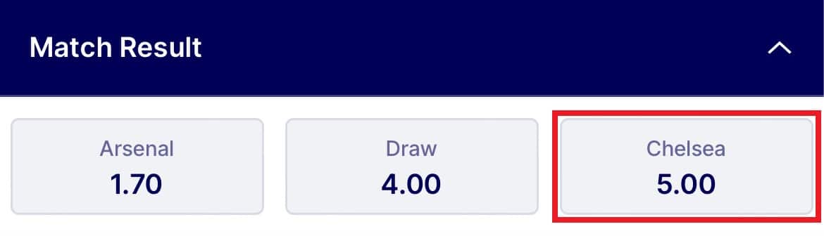 When writing, I’ve found the following odds for an EFL Cup football match between Arsenal and Chelsea.