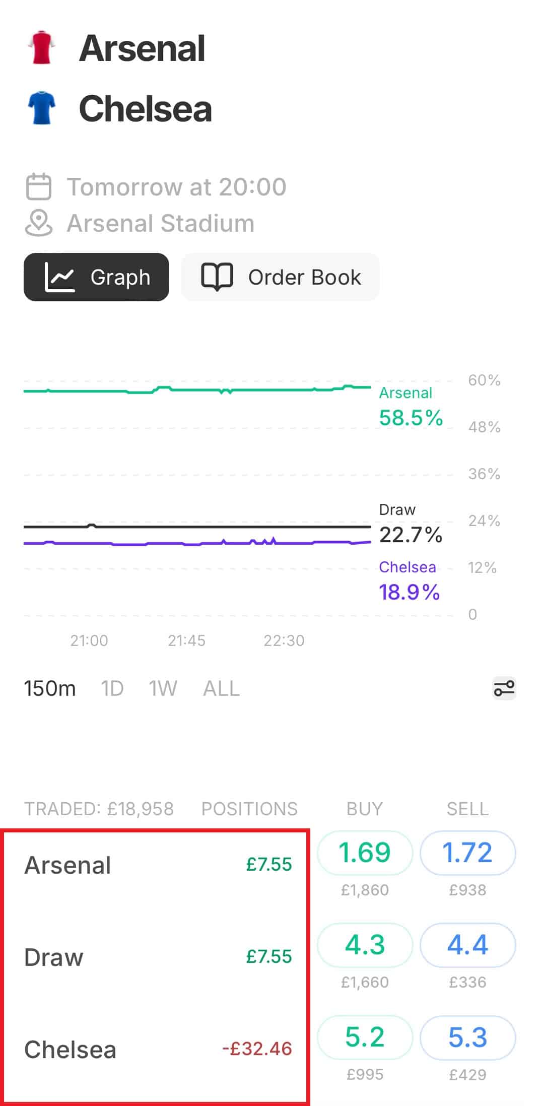 Your Smarkets screen should now update to display your potential profit or loss for each possible outcome.